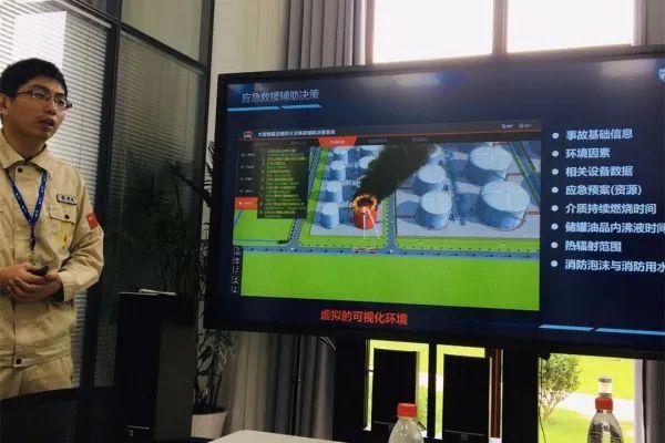 采訪團二組參觀位于臨城的岙山應急管理學院,石油儲備基地應急救援裝備,數字化應急救援預案體系,交流大型油罐滅火應急救援技術和體系建設等,了解國內原油儲備基地大型油罐滅火應急救援體系建設。