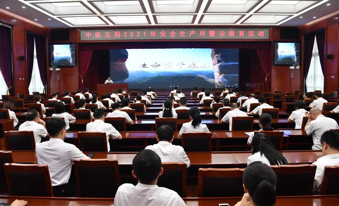 2021年6月是全國第20個安全生產月,主題是“落實安全責任、推動安全發展”。按照“安全生產月”活動有關要求,6月11日,中鐵五局在本部開展“安全生產月”警示教育活動,組織全體員工觀看了國務院安委辦、應急管理部制作的《生命重于泰山》電視專題片。