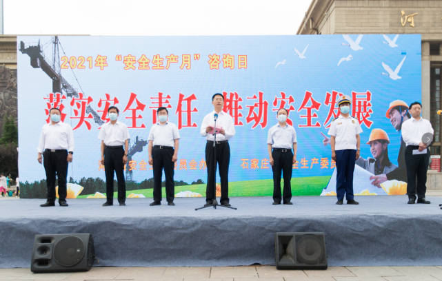 6月16日上午,河北省安委辦和石家莊市安委會等33個單位在省博物院廣場聯合舉辦了2021年安全生產月“安全宣傳咨詢日”活動。省安委辦主任、省應急管理廳廳長薛永純、省應急管理廳副廳長、一級巡視員劉春增、省消防救援總隊總隊長劉海龍、省應急管理廳副廳長張廣富、石家莊市政府副市長高玉柱、石家莊市政府常務副秘書長劉國勤、石家莊市應急管理局黨委書記、局長暴勝賢出席活動。薛永純發表講話并宣布安全宣傳咨詢日活動正式啟動。