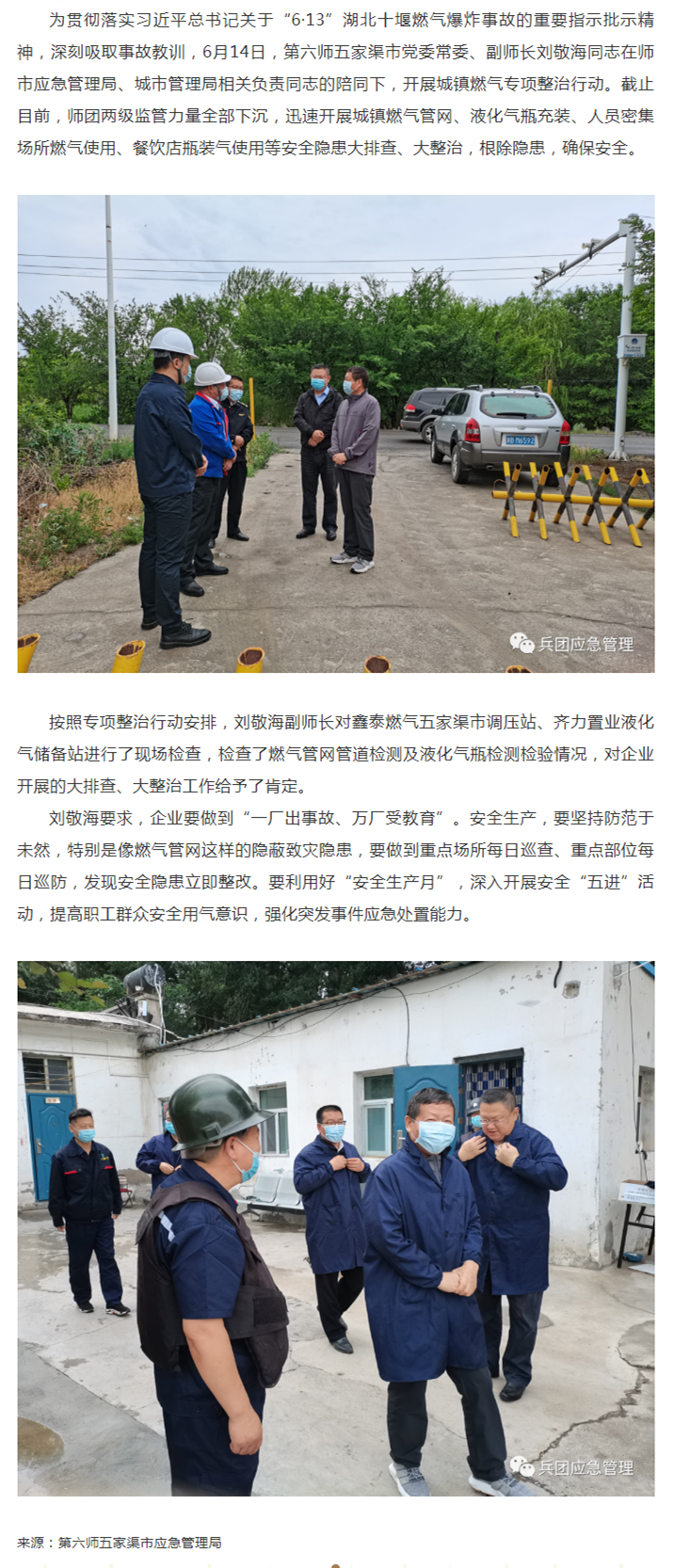 第六師五家渠市開展城鎮燃氣專項整治行動