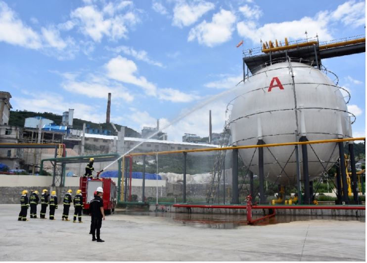 企業專職消防隊進行液氨球罐泄漏滅火應急演練