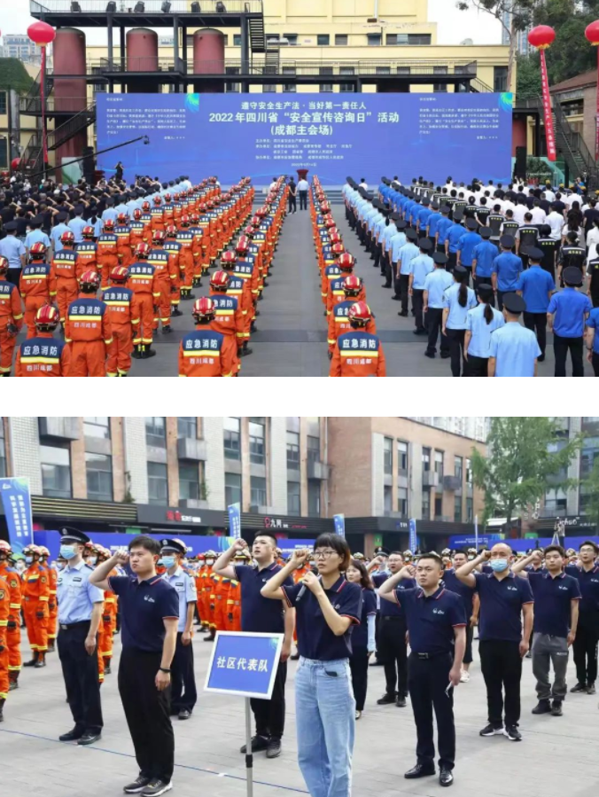 “我宣誓,認真履行安全生產崗位職責,當好安全生產第一責任人……”6月14日上午,成都市成華區東郊記憶廣場上,在政協四川省第十二屆委員會委員、成都富森美股份有限公司黨委書記兼總經理劉義的帶領下,一眾企業負責人對著主展臺莊嚴宣誓,由四川省安全生產委員會主辦,省委依法治省辦、省委宣傳部、司法廳、應急廳、省總工會、團省委和成都市人民政府承辦的2022年四川省“安全宣傳咨詢日”活動拉開帷幕。