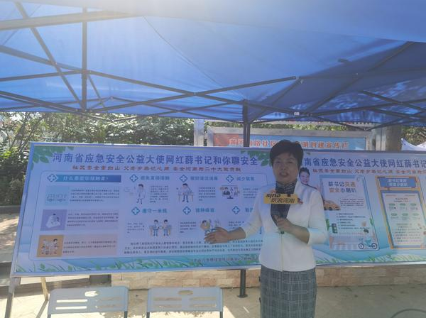 河南省應急安全公益大使薛榮正在講解日常生活中的安全注意事項