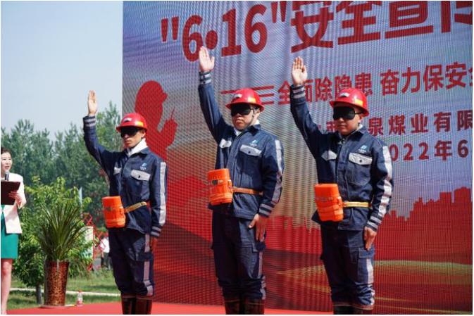 之后,石泉公司礦嫂、職工子女分別進行了關于“安全生產”主題演講,用濃濃的親情和深切的關愛為大家詮釋了安全的重要性,在場的觀眾無不動容落淚;3名千米鉆機崗位工演示了“一崗三述”安全確認管理法,井下職工演示了30s盲戴自救器操作,為職工了普及安全生產的知識技能;儀式現場石泉公司黨委副書記、礦長姚文龍宣布安全生產咨詢日活動正式啟動,參與活動的領導和來賓向基層隊組贈送了事故案例書籍,30多個參加活動的單位和煤礦負責人集體進行了安全宣誓,并在主題墻上簽名承諾。