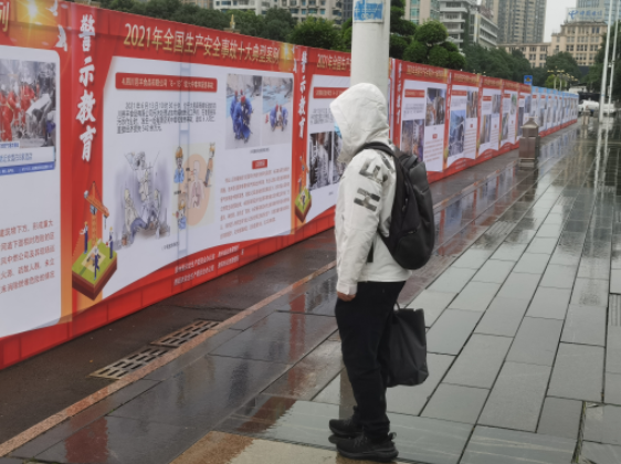 長長的大型展板上展出了2021年全國安全生產事故十大典型案例,這些案例對群眾起到了警示教育作用。