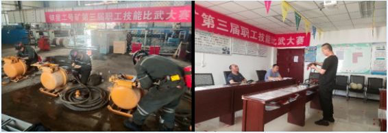 天地華泰銀二項目部舉行了“崗位練兵強技能,以賽促學提素質”瓦檢員技術比武和電工技能比武。分別通過理論知識筆試和開關、電機接線等實操比試方式進行,不僅提高了業務水平,也為大家提供相互切磋、共同提高的平臺,使得“安全生產月”的安全文化理念更加深入人心。