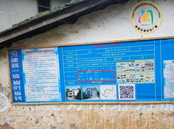 公示牌上寫著片房長、村房長、哨兵三位監督人的姓名和聯系電話,按照三明市推行的縣鄉村三級“房長制”的要求,他們每周對這座自建房巡查不少于兩次,全程監管房屋的安全質量。
