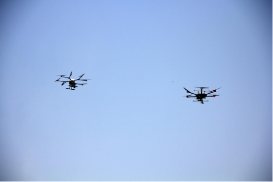 現場指揮部使用兩架無人機,一架無人機搭載熱成像鏡頭和高倍高清鏡頭,進行偵查,一架搭載指揮喊話系統,在單兵系統的配合下,實現零延遲指揮