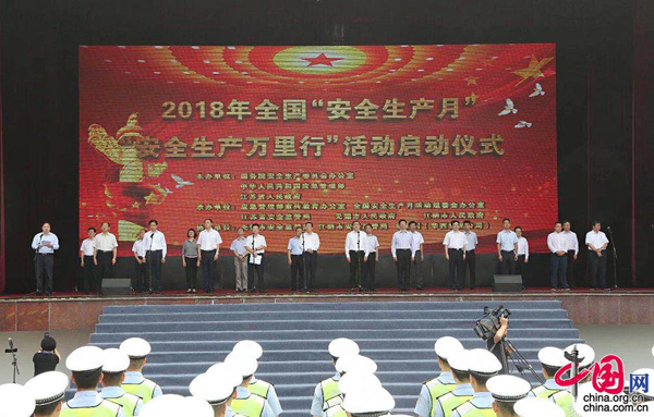 6月1日上午,國務院安委會辦公室在江蘇省江陰市華西村舉行2018年全國“安全生產月”和“安全生產萬里行”活動啟動儀式。 應急管理部供圖