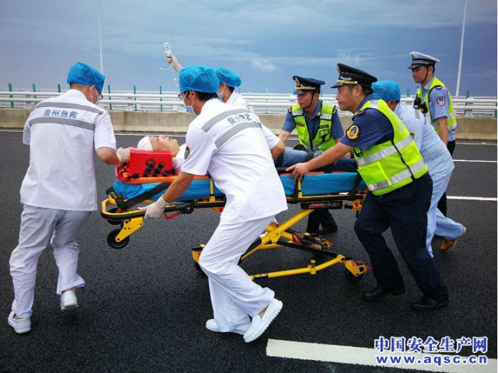 演練分三個項目,分別是泉州灣跨海大橋突發事件應對處置;正確應對和有序處置泉州灣大橋突發環境事件;評估泉州市空地立體救援的呼叫流程和應急預案,檢驗從事故第一現場到空中,從現場到醫院的標準化對接,鍛煉救援隊伍。